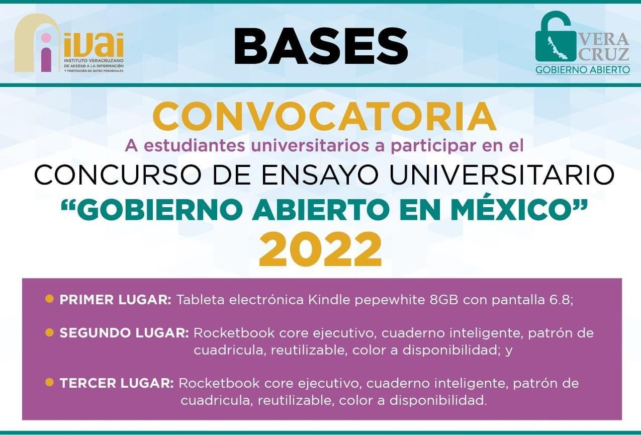 La Unidad de Transparencia de Lerdo de Tejada y el H. Ayuntamiento en colaboración con el IVAI, llevan acabó la convocatoria a estudiantes de nivel universitario para participar en el Concurso de Ensayo Universitario, en dónde los 3 primeros lugares obtendrán diversas recompensas.