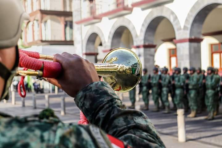 Al concluir el izamiento de bandera en la plaza cívica del Parque Sebastián Lerdo de Tejada, la banda de guerra del Primer Batallón de Infantería, acompañó a las autoridades y personas reunidas ahí para entonar la letra de nuestro glorioso himno nacional. Posteriormente se entonó el himno a Veracruz.