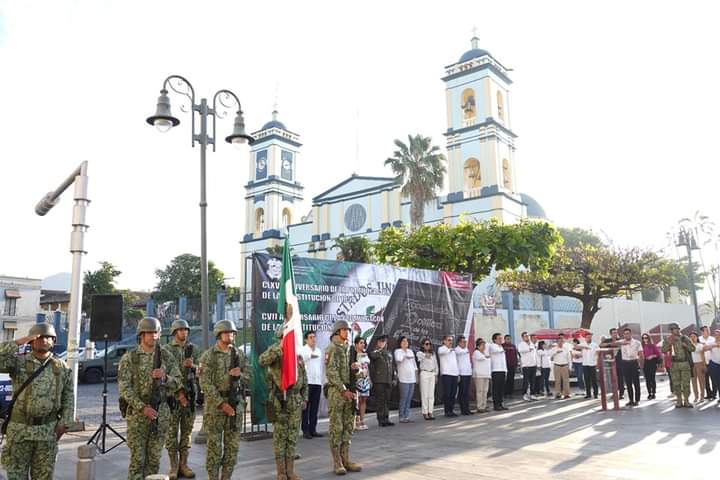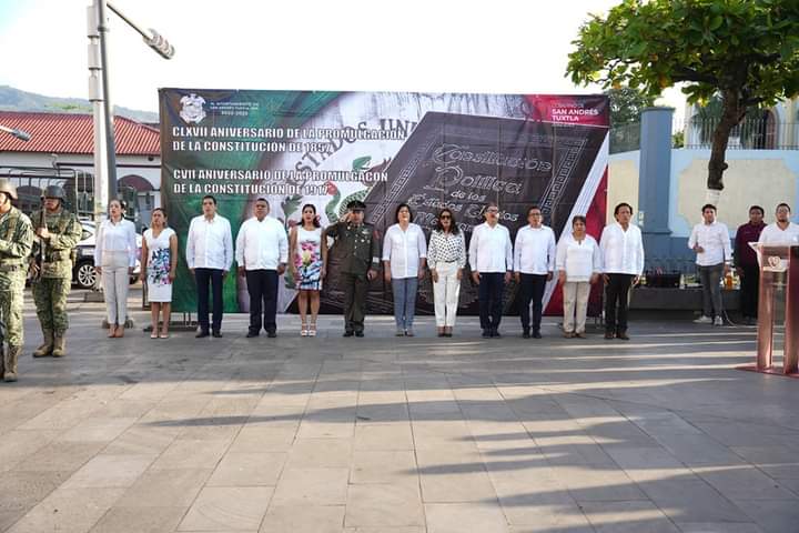 San Andrés Tuxtla, Ver.- «Celebramos con orgullo 107 años de la promulgación de nuestra carta magna, la constitución de 1917, con la cual quedaron sentadas las garantías, derechos y obligaciones que hoy rigen a todos los mexicanos, este día desde la presidencia de la república se plantean las reformas y cambios que harán de nuestro país una nación con más posibilidades de ofrecer bienestar a los mexicanos» detalló la Presidenta Municipal de San Andrés Tuxtla, la doctora María Elena Solana Calzada, durante el acto cívico conmemorativo, con motivo del aniversario de la promulgación de la constitución mexicana de 1957 y la de 1917.