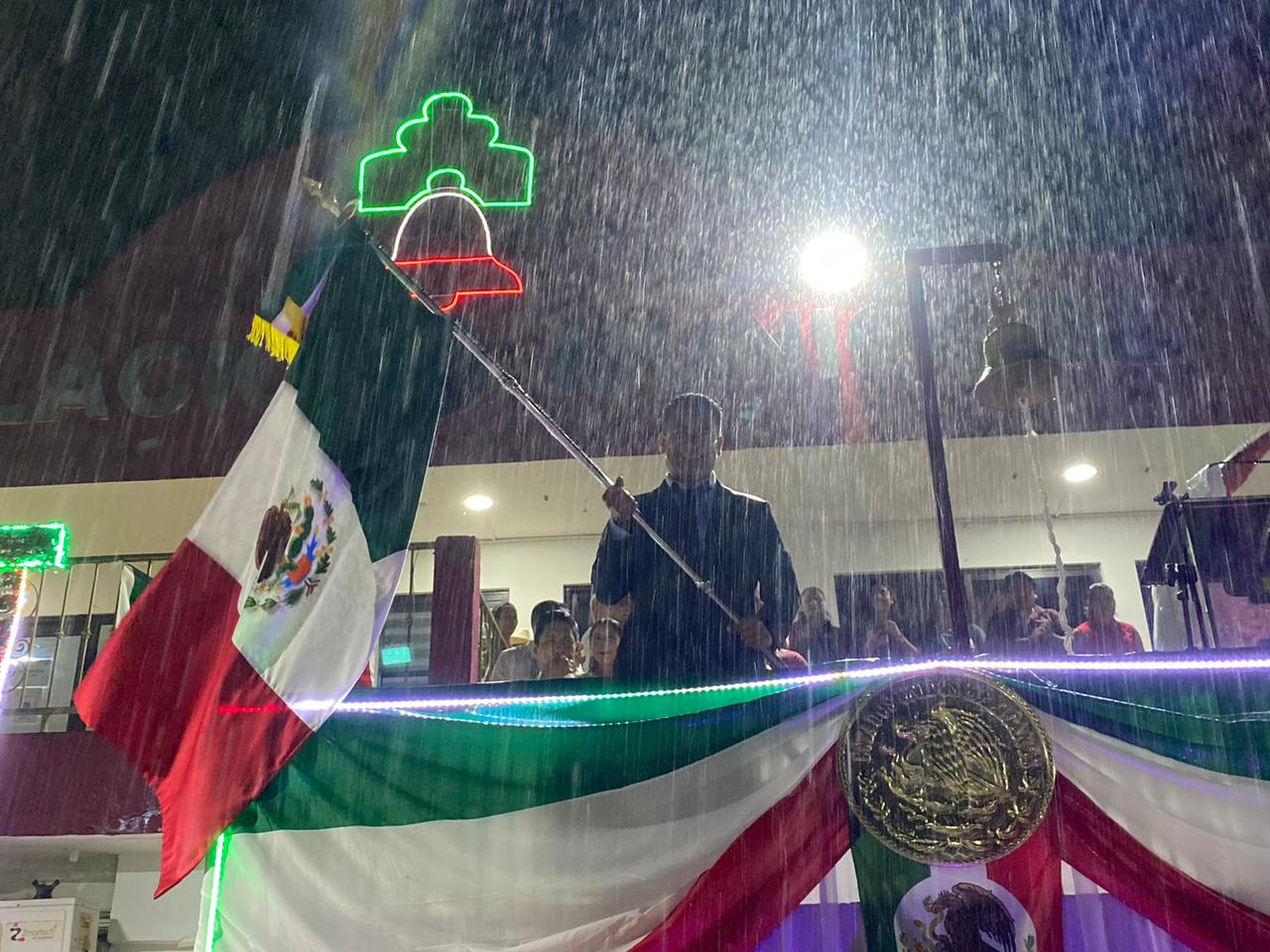 En punto de las 23 horas, al dar el grito de “¡Viva México!” y mencionar a los héroes que nos dieron patria, el alcalde también recordó la importancia histórica de México, ante decenas de cabadences que pese a las inclemencias del tiempo asistieron a la explanada del recién rehabilitado parque 18 de junio.