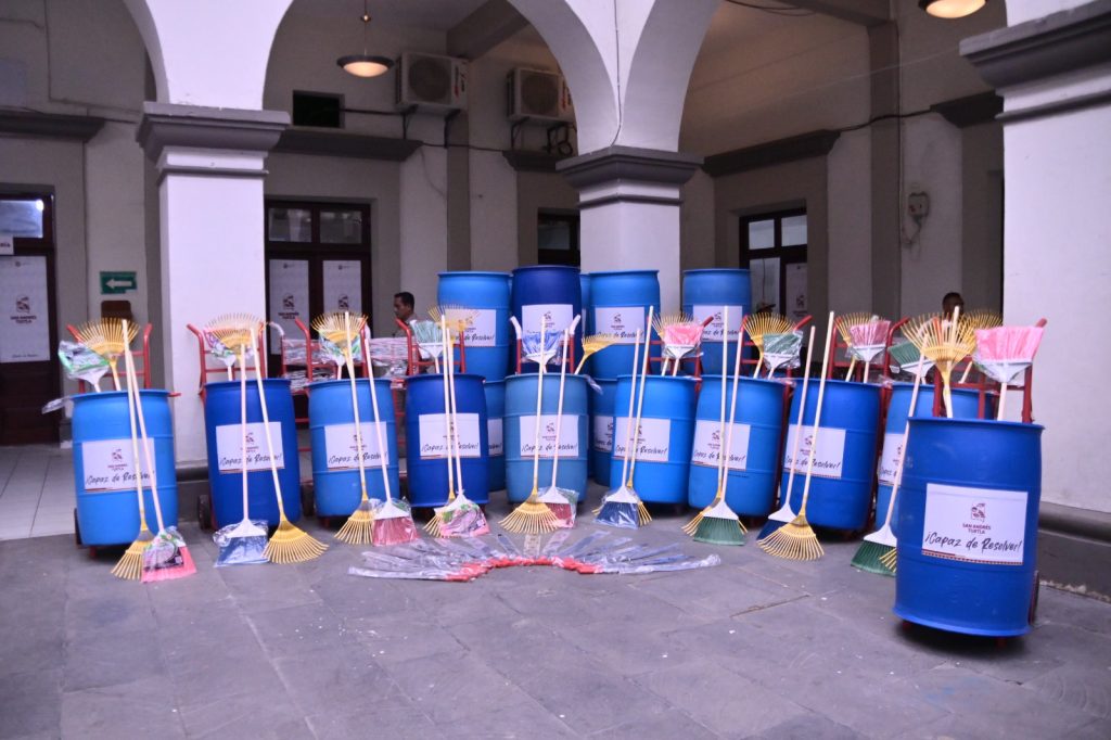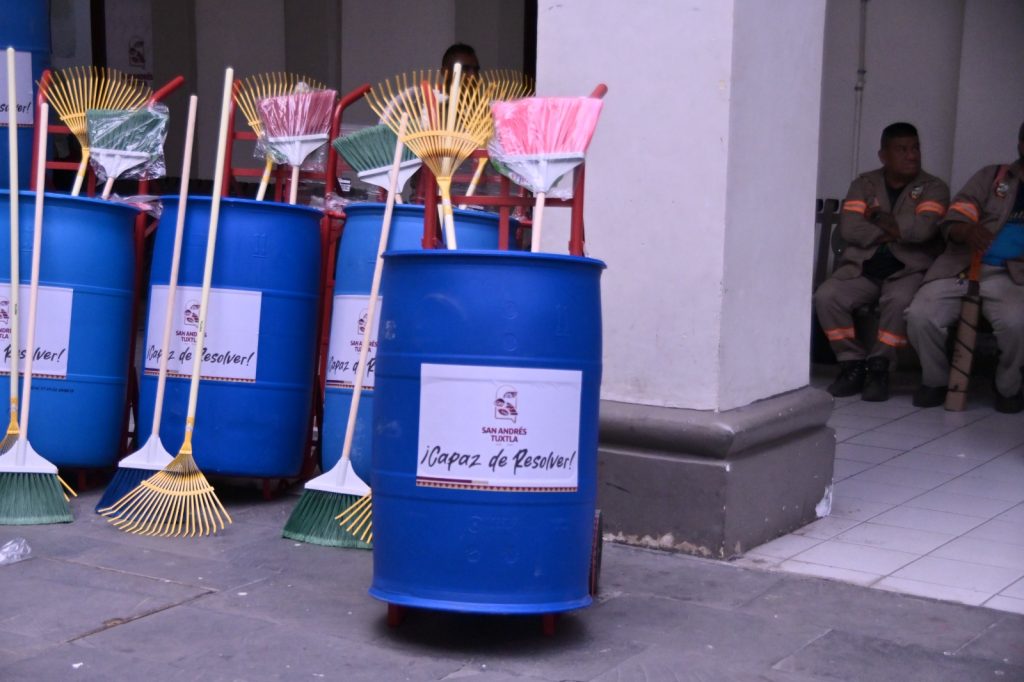 San Andrés Tuxtla, Ver., 18 de marzo de 2026.- El Gobierno Municipal entregó a empleados de la dirección de Limpia Publica, materiales para realizar sus labores diarias en las calles de la ciudad.