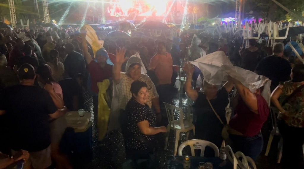 Asimismo, engalanaron la noche los artistas Jonathan Becerra y Vanessa Oryarzun “La Vecina” que desfilaron en carros alegóricos, cerrando la noche y el carnaval con broche de oro Nelson Kazenla, ni la lluvia paró el baile.