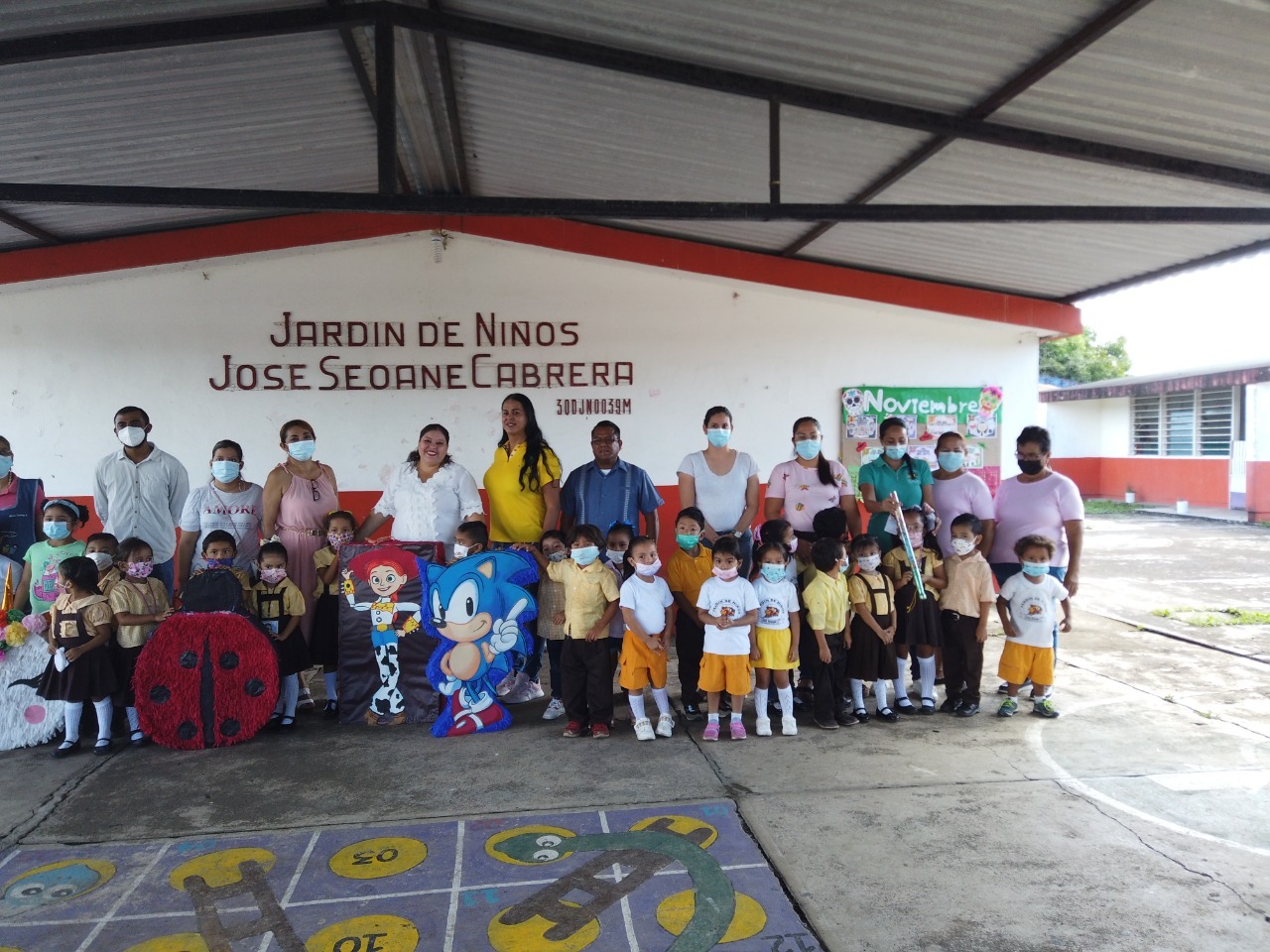 Durante la entrega de la obra la Sindica en funciones de Presidenta María Esther Arróniz López llevó a los niños piñatas para celebrar la entrega de esta obra de beneficio a largo plazo.